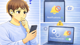 通知トラブルPC・スマホで通知が来ない原因とは?設定ONでも届かないときの対処法 通知が来ない原因を解説。PCやスマホでLINE・メール・アプリ通知が届かない理由と、設定ONでも届かない場合の対処法をわかりやすく紹介します。 2026.03.27通知トラブル
